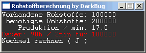 Das Programm kehrt sofort in die Eingabemaske zurück und wartet ca. eine Minute auf eine weitere Eingabe, während der Sound abgespielt wird.
